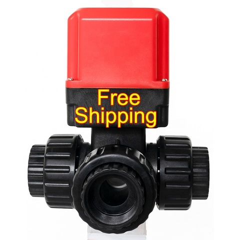 חינם משלוח DC24V AC220V DN25-50 3-דרך שסתום חשמלי אוטומטי שלוש דרך PVC PPO 3 דרך שסתום בקרה עובד להפסיק זין מרפק